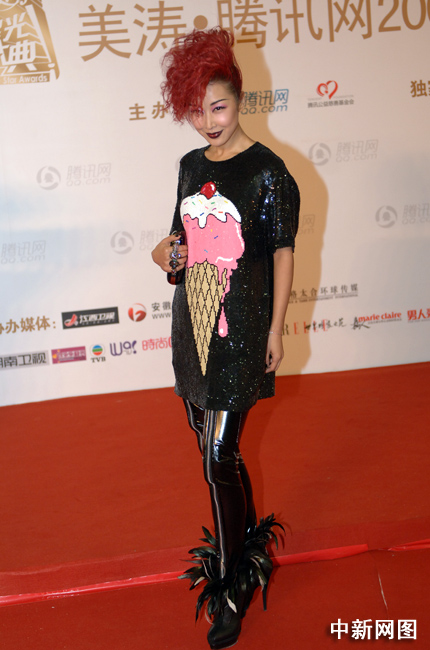 圖為孫悅紅發(fā)造型走秀引尖叫。中新網(wǎng)記者 金碩 攝
