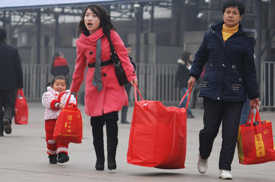 一年一度的春運今日起正式開始。2010年的春運從1月30日起至3月10日,為期40天,其中節(jié)前15天,節(jié)后25天。據權威預測,今年春運客運量料超25億人次。圖為1月30日,長沙火車站,出行的旅客攜帶著大小包裹匆忙趕路。郭立亮 攝