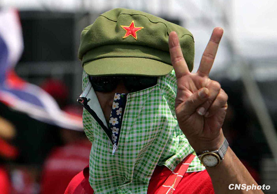 3月13日起,泰國“紅衫軍”陸續(xù)從泰國北部、東北部等外府進(jìn)入曼谷市,在集會(huì)主會(huì)場搭設(shè)演講舞臺(tái)和帳篷,拉開大規(guī)模示威序幕。圖片來源:中國新聞網(wǎng)