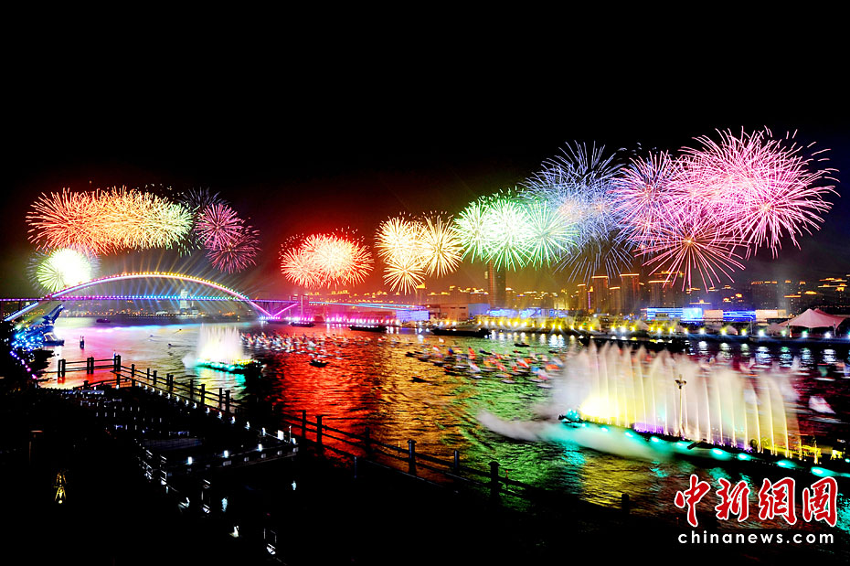 4月30日晚21時28分,在世博會焰火燈光表演開始。萬千煙花爭奇斗妍,黃浦江兩岸綿延3.28公里同時奏響火樹銀花不夜天的華彩世博樂章。圖片來源:中國新聞網(wǎng)