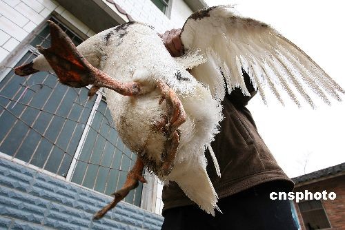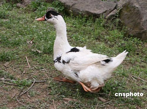 2009年3月10日,在四川省綿陽市游仙區(qū)忠興鎮(zhèn)涌泉村一社張云澤家拍攝的一只長了四只腳的鴨子。這只鴨子除了長有兩只正常的腳之外,在兩只正常腳的根部分別多長出了兩只腳狀的肢體。其特征和正常的鴨腳差不多,腳蹼腳趾俱全,只是看去稍顯小些。走路時,兩只腳好像抱在屁股上不能活動。 中新社發(fā) 蒲滔 攝