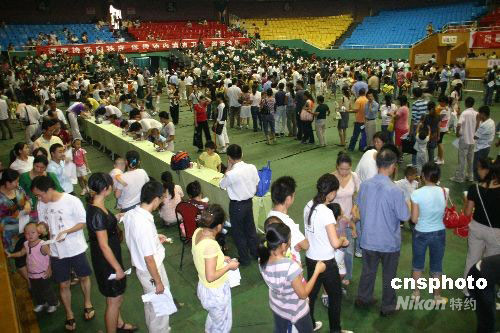 9月20日,南京市兒童醫(yī)院“問(wèn)題奶粉”嬰幼兒專病門診搬至南京五臺(tái)山體育館,以便對(duì)食用“問(wèn)題奶粉”的嬰幼兒篩查和診治。連日來(lái),前來(lái)篩查的嬰幼兒數(shù)量急劇增加,僅9月19日就有2500多名嬰幼兒前來(lái)篩查。南京地區(qū)其他定點(diǎn)篩查醫(yī)療機(jī)構(gòu)照常工作。中新社發(fā) 阿董 攝