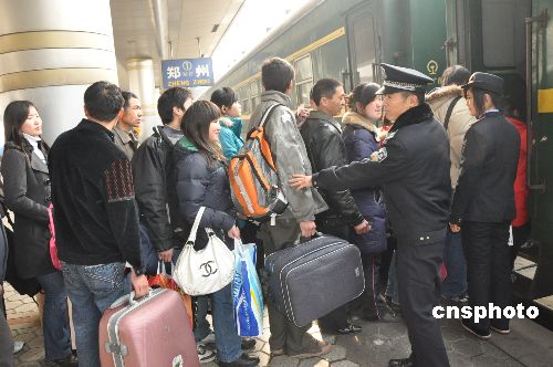 1月5日,針對今年春運客流情況,鄭州鐵路局暨鄭州火車站提前啟動2009年春運。為做好今年的春運工作,鄭州鐵路局提前部署安排,精心制定臨客車底整修方案,嚴格臨客列車的質量標準及驗收檢查,目前28組臨客車底已經全部整備完畢。從當日開始,臨客車將按照春運節(jié)前開行方案陸續(xù)投入使用。中新社發(fā) 劉書亭 攝