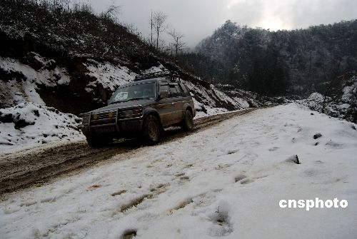 1月5日,新年伊始,四川北川迎來了2009年到第一場雪,由于大雪封山,擂禹路海拔1500米的冒火山已被冰雪吞沒,維系北川關(guān)內(nèi)12個羌族、藏族鄉(xiāng)鎮(zhèn),6萬多名群眾生產(chǎn)生活的“生命線”再次因風(fēng)雪阻斷。目前,北川交通護路隊進(jìn)入擂禹路開始搶通,預(yù)計10日能夠搶通。中新社發(fā) 胥輝 攝
