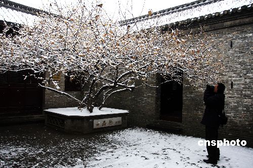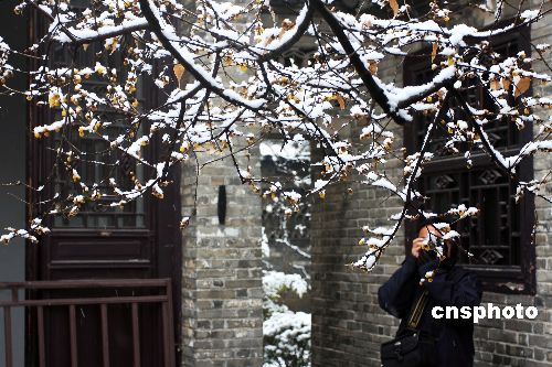 2008年1月6日,江蘇省淮安市迎來新年第一場大雪,在該市周恩來童年讀書處,由少年時代周恩來親手種植的百年臘梅傲雪盛開。中新社發(fā) 徐洪云 攝