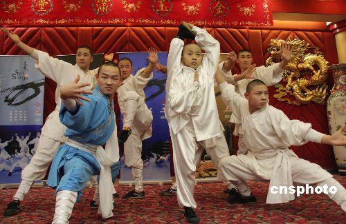 中國內地戲劇作品將首次登陸百老匯舞臺。1月13日起,大型中國功夫劇《少林武魂》將在美國紐約百老匯連演二十四場,從而為“中國在百老匯”系列演出拉開序幕。1月11日,《少林功夫》主要演員在紐約舉行見面會并集體“亮相”。中新社發(fā) 魏晞 攝