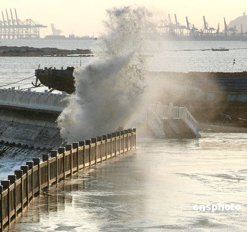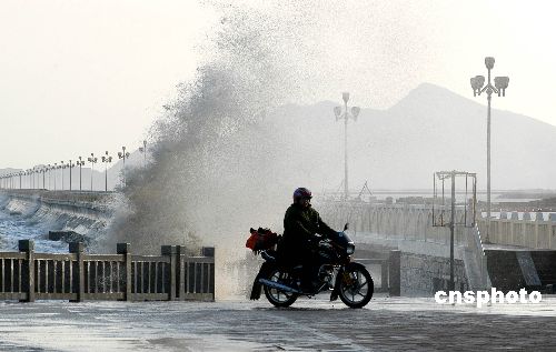 1月14日,江蘇連云港受北方冷空氣影響,海上出現(xiàn)7至8級偏北大風(fēng),沿海海邊出現(xiàn)巨浪,洶涌的海浪與岸邊的礁石相撞擊,卷起層層雪一樣的浪花,海邊港灣不時(shí)可見大風(fēng)掀起10米多高的巨浪。 中新社發(fā) 王春 攝