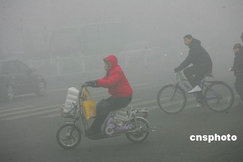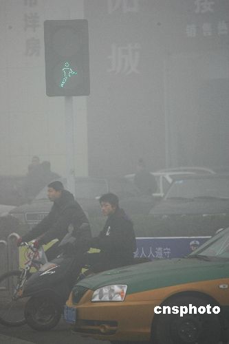 2月2日,山東濰坊整個(gè)城市全部為大霧所籠罩。連日來,濰坊市區(qū)受到大霧天氣襲擾,能見度最低時(shí)不足50米,當(dāng)?shù)貧庀蟛块T發(fā)布大霧黃色預(yù)警信號(hào),提醒市民安全出行。中新社發(fā) 張馳 攝