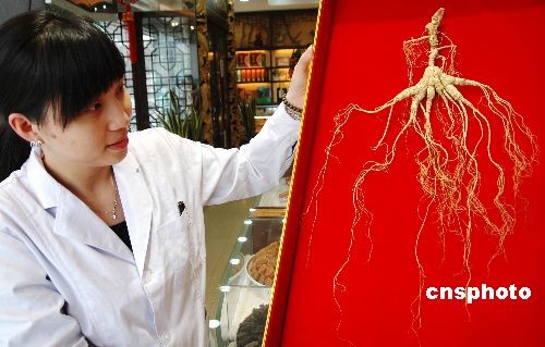 2009年2月5日,一株重約80克、售價高達(dá)100萬元的“天價”野山參王亮相蘇州南春堂藥鋪。據(jù)了解,如此巨型人參在野山參生長史上實(shí)為罕見,具有極高的收藏和藥用價值。中新社發(fā) 朱子寒 攝
