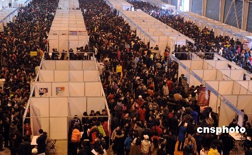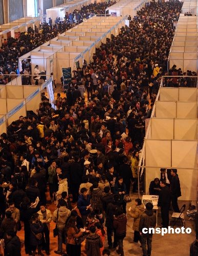 2009年2月6日,2009山東半島城市群春季人才交流暨黃河三角洲開發(fā)人才招聘大會(huì)在山東濰坊舉行,吸引數(shù)萬應(yīng)聘者到場(chǎng)。中新社發(fā) 王志德 攝
