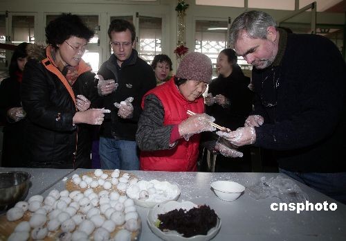 2月8日,中國傳統(tǒng)元宵節(jié)將至,北京東四四條胡同的一座四合院里,社區(qū)居民和同住在社區(qū)里的美國、法國友人一起慶祝元宵佳節(jié),一起包湯圓,猜燈謎,做花燈,體驗中國傳統(tǒng)節(jié)日和民俗。中新社發(fā) 杜洋 攝