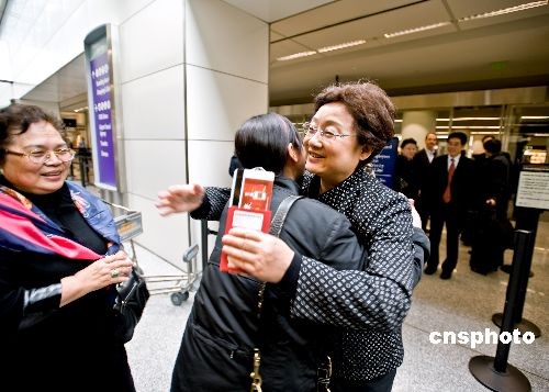 當地時間二月十四日,中國國務院僑辦主任李海峰和《四海同春》藝術團結束了為期十八天的美國慰僑演出,離開舊金山返京。圖為李海峰離美前向前來送行的僑胞依依惜別。中新社發(fā) 陳鋼 攝