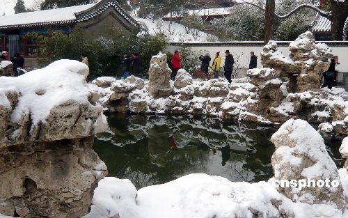 2月19日,北京普降瑞雪,白雪皚皚的京城吸引眾多游客拍攝雪景。圖為雪后的京城皇家園林北海。中新社發(fā) 錢興強 攝