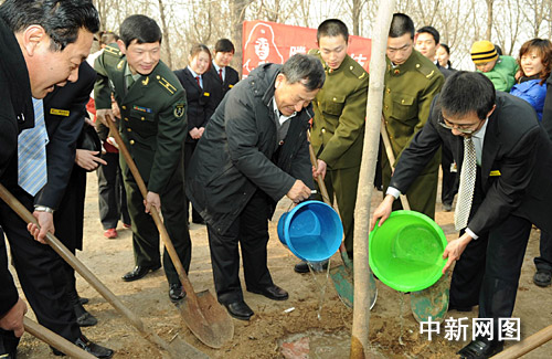 在毛主席為雷鋒同志題詞46周年之際,雷鋒生前戰(zhàn)友喬安山來到河北滄州,和“騰達雷鋒志愿者”們一起在人民公園栽下愛心樹。他告誡志愿者說:“綠化祖國需要每一個人盡一份力,今天在這里種下綠色,希望雷鋒精神永遠在這片土地上扎根。 王少華 攝