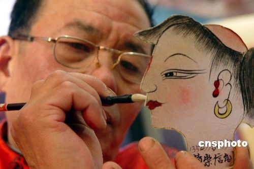 3月2日,一位來(lái)自河南羅山的民間藝人現(xiàn)場(chǎng)制作并“秀”皮影戲道具,向觀眾推介河南。當(dāng)日,設(shè)在北京全國(guó)農(nóng)業(yè)展覽館的“河南農(nóng)民工風(fēng)采展”揭開(kāi)帷幕。中新社發(fā) 李志全 攝