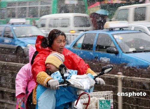 3月2日下午,江淮地區(qū)突降大雪,安徽宿州街頭路人在風雪中艱難前行。中新社發(fā) 王玉明 攝