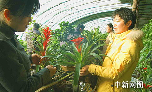 3月4日,甘肅省玉門市境內(nèi)的日光溫室花卉棚里,市民選購絢麗多彩的鮮花,用來裝點居室,或走親訪友。玉門市位于甘肅省西端,隨著天氣轉暖,這里的日光溫室里,各種鮮花爭相開放。方圓 攝