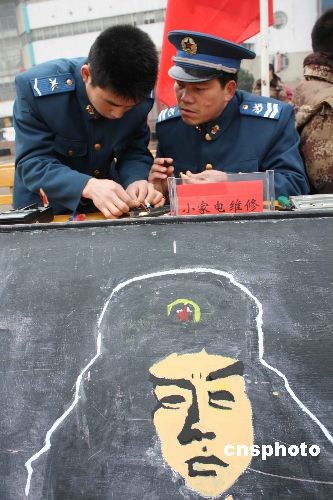 3月5日,青年志愿者在蚌埠火車站廣場參加“學(xué)雷鋒”獻(xiàn)愛心便民服務(wù)活動。當(dāng)日是全國“學(xué)雷鋒日”,共青團(tuán)安徽蚌埠市委舉行了“爭做志愿者、創(chuàng)造新生活”為主題的志愿服務(wù)統(tǒng)一行動,部隊(duì)、機(jī)關(guān)、學(xué)校、醫(yī)院、企業(yè)等二十多個單位組成多個青年志愿便民服務(wù)隊(duì),深入駐地農(nóng)村、街道、社區(qū)、敬老院、兒童福利院等地,積極開展醫(yī)療巡診、法律咨詢、計(jì)生宣傳、心理咨詢、環(huán)保宣傳、家電維修、安全消防、用電知識等多種服務(wù)活動。中新社發(fā) 耿國慶 攝