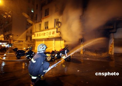 三月四日晚上九時許,福建省寧德市蕉城區(qū)建新路沿街一幢七層商品房的一層摩托車維修店鋪突然起火,樓上十余戶居民二十人被困,在消防官兵的奮力撲救下,被困群眾全部被安全疏散,火災沒有造成人員傷亡。目前,消防部門正在對火災原因進行調查。中新社發(fā) 陳強 攝