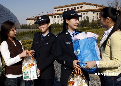 3月6日,首都藝術(shù)家協(xié)會演職人員及全國推新人大賽獲獎選手,到北京西城公安分局西長安街派出所慰問全國“兩會”值勤女干警,并現(xiàn)場送上“三八”節(jié)日的問候及慰問品。中新社發(fā) 鄭雄增 攝