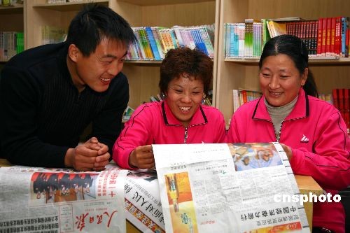 3月7日,北京市懷柔區(qū)雁棲鎮(zhèn)陳各莊村村民正在村中“益民書(shū)屋”閱讀“全國(guó)兩會(huì)”專(zhuān)題報(bào)道內(nèi)容。全國(guó)“兩會(huì)”召開(kāi)以來(lái),京郊農(nóng)民十分關(guān)注特別是有關(guān)“三農(nóng)”議題,黨中央關(guān)于“三農(nóng)”的有關(guān)新政策,極大的鼓舞了京郊農(nóng)民艱苦創(chuàng)業(yè)的勇氣,堅(jiān)定了農(nóng)民勤勞致富奔小康的信心。中新社發(fā) 卜向東 攝