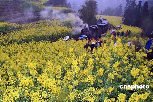 3月8日,來自各地的婦女游客,紛紛擁入四川樂山犍為感受嘉陽小火車的獨特魅力。嘉陽小火車的軌距僅76.2cm,被稱為“寸軌”,只有普通列車軌距的一半左右。它是世界上目前唯一尚存的窄軌客運蒸汽小火車,被稱為“原生態(tài)的工業(yè)革命活景觀”、“活著的18世紀工業(yè)革命博物館”。 中新社發(fā) 黃家明 攝