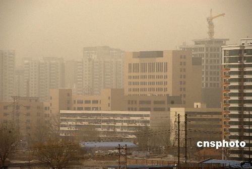 3月15日13時左右,北京城區(qū)出現(xiàn)浮塵,能見度降低。據(jù)北京市氣象臺最新消息,北京今天受上游沙塵天氣影響,出現(xiàn)浮塵天氣。中新社發(fā) 草木 攝