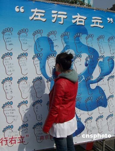 3月20日,上海黃浦區(qū)青年迎世博志愿者特別行動(dòng)在南京路地鐵下沉式廣場(chǎng)舉行,F(xiàn)場(chǎng)設(shè)立迎世博文明墻,邀請(qǐng)市民參與世博文明倡議。并進(jìn)行世博志愿者,左行右立地鐵文明乘梯、造血干細(xì)胞捐獻(xiàn)等志愿者的招募活動(dòng)。中新社發(fā) 周東潮 攝