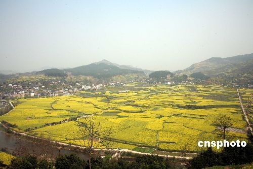陽春三月,貴州省貴陽市開陽縣禾豐鄉(xiāng)油菜花盛開,一片片的金黃油菜花形成一幅美麗畫卷。中新社發(fā) 彭年 攝