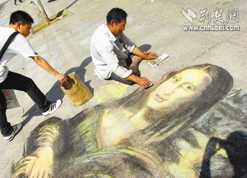 “這蒙娜麗莎畫得太像了!”昨日(15日)下午2時許,武昌中南路人行道上,一位畫者用粉筆在地上描畫的“蒙娜麗莎”,引來駐足行人的贊嘆。