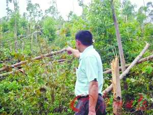 “半夜聽(tīng)到呼呼的風(fēng)聲,隱約看到有白影在移動(dòng),接著冰雹就砸下來(lái)了!碑(dāng)夜正在值守的中興村村委會(huì)書記馮文安回憶道。昨日凌晨2時(shí)50分至3時(shí)10分,一股強(qiáng)勁的龍卷風(fēng)在臨田村北部的山林出現(xiàn),從臨田村村邊的水田和果林掠過(guò)。
