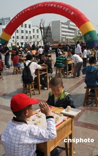 4月18日,在山東博興縣文化廣場(chǎng),136名當(dāng)?shù)刂袊?guó)象棋愛(ài)好者參加了山東省“全民健身,共享全運(yùn)”萬(wàn)人中國(guó)象棋博興賽區(qū)比賽。比賽分為成人、少年兒童兩個(gè)組別。為了弘揚(yáng)“和諧中國(guó),全民全運(yùn)”,營(yíng)造喜迎“十一運(yùn)”的良好社會(huì)氛圍,山東省在全省范圍內(nèi)組織舉辦了“全民健身、共享全運(yùn)”萬(wàn)人中國(guó)象棋比賽。 中新社發(fā) 陳 彬 攝