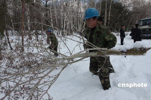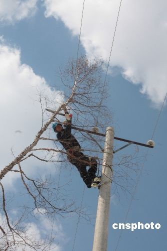 4月23日,當牡丹江市電業(yè)搶修人員將三道林場內最后一處電線桿上的刀閘閉合,7000多戶因暴雪導致斷電的人家,終于重新恢復正常的生產生活。 4月21日,黑龍江省牡丹江市出現雨夾雪天氣,其中牡丹江市三道林場的局部林區(qū)因當地“小氣候”影響遭受暴雪襲擊,最深處的積雪厚度達到1米以上,林區(qū)內的一些林木被大雪壓斷,通過林區(qū)內的部分供電線路短路。從4月21日至4月23日,牡丹江市電業(yè)系統(tǒng)出動100多名搶修人員奮戰(zhàn)在40多公里的林區(qū)供電線路上,及時排除短路故障及線路險情。直到4月23日下午1點30分,各個停電村屯才陸續(xù)恢復供電。中新社發(fā) 莊文斌 攝