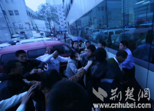 23日下午,湖北省婦幼保健醫(yī)院門前,發(fā)生一起流血事件:多名患者家屬在與醫(yī)院因醫(yī)療事故協(xié)商發(fā)生糾紛時(shí),醫(yī)院一伙保安竟用“甩鞭”和鋼管等將患者家屬打倒,造成多人受傷。