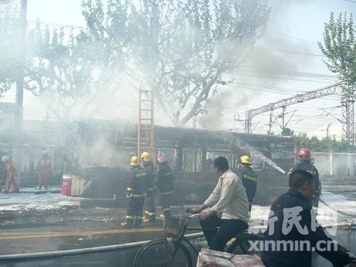 記者了解到,事發(fā)時(shí),這輛公交車正沿交通路由西向東行駛近新泉路,乘坐在車后部的乘客發(fā)現(xiàn)車廂內(nèi)有嗆人的煙霧,立即招呼司機(jī)。司機(jī)當(dāng)即停車組織乘客撤離,隨即便展開撲救。不料火勢(shì)迅速蔓延,不一會(huì)公交車已陷入一片火海。
