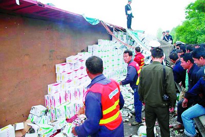 事發(fā)后,附近約200名村民蜂擁爬上高速公路哄搶牛奶。負(fù)責(zé)勘察和處理事故的2名民警根本無法制止。現(xiàn)場(chǎng)民警將情況報(bào)告指揮中心,高速交警臨長(zhǎng)大隊(duì)兩個(gè)巡邏分隊(duì)8名民警緊急支援。15分鐘后,支援民警趕到現(xiàn)場(chǎng),成功制止哄搶,并當(dāng)場(chǎng)將已經(jīng)哄搶的200多箱牛奶追回。中午12時(shí),現(xiàn)場(chǎng)清理完畢,京珠高速臨長(zhǎng)段由北往南方向125公里處三條車道全部恢復(fù)暢通。據(jù)了解,該事故中沒有人員受傷,沒有引起交通堵塞。(千靈坡)