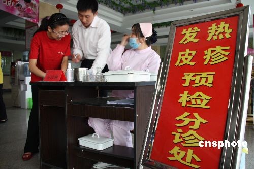 5月4日,山東聊城東昌府區(qū)婦幼保健院分診臺(tái)工作人員在對(duì)前來(lái)就診的患者進(jìn)行預(yù)檢分診。針對(duì)當(dāng)前甲型H1N1流感防控形勢(shì)的日益嚴(yán)峻,山東聊城市各醫(yī)療機(jī)構(gòu)按照《預(yù)診分診管理辦法》,設(shè)立發(fā)熱門診和預(yù)檢分診處,對(duì)不明原因肺炎和流感樣病例進(jìn)行及時(shí)監(jiān)測(cè)。中新社發(fā) 孔政 攝