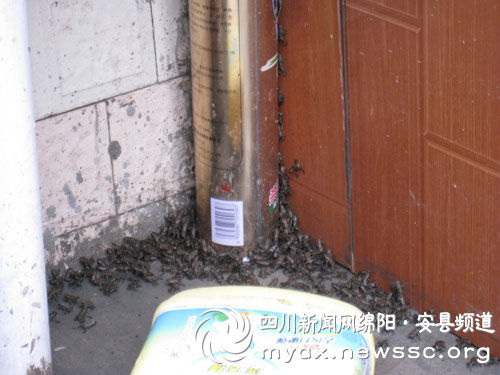 前日一早,家住綿陽(yáng)安縣桑棗鎮(zhèn)香溪村4組的席興國(guó)打開(kāi)家門(mén),瞬間被眼前的景象嚇傻了:一眼望去,在視線所能及的范圍,地面上密密麻麻地聚集了小拇指般大小、黑壓壓一片小蟾蜍,要想出去根本沒(méi)法下腳。再一探頭,只見(jiàn)院子里、路上、鄰居房子周?chē)急簧习偃f(wàn)只蟾蜍包圍了。如此異常現(xiàn)象,村民擔(dān)心為地震前兆,相關(guān)部門(mén)正在進(jìn)一步調(diào)查當(dāng)中。