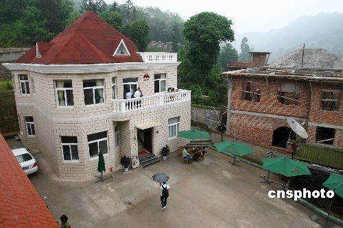 5月12日四川大地震將滿周年,都江堰大觀鎮(zhèn)茶坪村通過“聯(lián)建”房方式,已使倒塌的房屋變成嶄新的小別墅。該村緊鄰世界文化遺產(chǎn)青城山,全村共147戶,去年“5.12”大地震造成全村房屋受到不同程度的損壞,茶坪村在災(zāi)后重建中運(yùn)用統(tǒng)籌城鄉(xiāng)的思路和方式,結(jié)合農(nóng)村產(chǎn)權(quán)制度改革成果,利用旅游和基礎(chǔ)設(shè)施優(yōu)勢,引入社會資金采取“聯(lián)建”方式重建,突出后續(xù)產(chǎn)業(yè)發(fā)展,布局未來鄉(xiāng)村連鎖酒店業(yè),構(gòu)筑村民可持續(xù)增收平臺,推進(jìn)了災(zāi)后重建與產(chǎn)業(yè)發(fā)展的統(tǒng)籌布局。中新社發(fā) 富田 攝