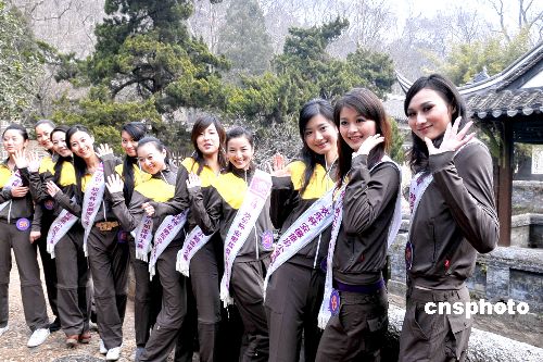 1月3日,安徽首屆旅游小姐選拔賽的30名決賽選手來到滁州瑯琊山國家森林園,開展“魅力新旅游,美麗俏佳人”活動(dòng),展示美景與美女交融的場景,在節(jié)日中演繹無限風(fēng)情。中新社發(fā) 王家國 攝