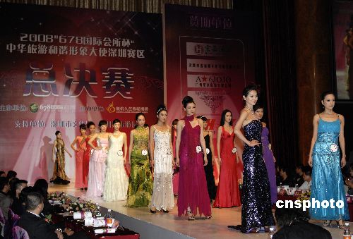 2009年1月4日晚,中華旅游和諧形象大使深圳賽區(qū)總決賽,在廣東深圳福田大中華喜來(lái)登酒店圓滿收官。本次大賽以 “東方神韻,世界和諧” 為主題,以倡導(dǎo)“健康生態(tài)旅游”為宗旨,整合深圳自然資源和人文內(nèi)涵,推廣區(qū)域旅游,推動(dòng)了旅游文化專業(yè)賽事向國(guó)際化發(fā)展。中新社發(fā) 閆晉 攝