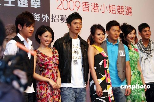 香港無線電視舉辦一年一度的香港小姐選舉及香港先生選舉即將召開,十六日,香港無線電視舉行記者會(huì),公布海外招募行動(dòng)全面展開。港男高鈞賢、港姐亞軍陳倩揚(yáng)等一眾香港先生及應(yīng)屆香港小姐出席活動(dòng)造勢(shì)宣傳。中新社發(fā) 洪少葵 攝