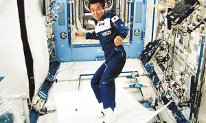 日本宇航員若田光一在國際空間站上由日本建造的“希望”號實驗艙內(nèi)試驗了毯上飛行以及零重力條件下滴眼藥水等。據(jù)報道,日本宇宙航空研究開發(fā)機(jī)構(gòu)已將若田5月15日的“飛毯”表演視頻公之于眾。畫面顯示,現(xiàn)年45歲的若田站在一塊白色布單上,就像單板滑雪一樣平穩(wěn)地滑過國際空間站上的一個實驗艙。若田通過麥克風(fēng)說:“我在這個‘魔毯’飛行中使用膠帶固定雙腳,以便能站在上面!