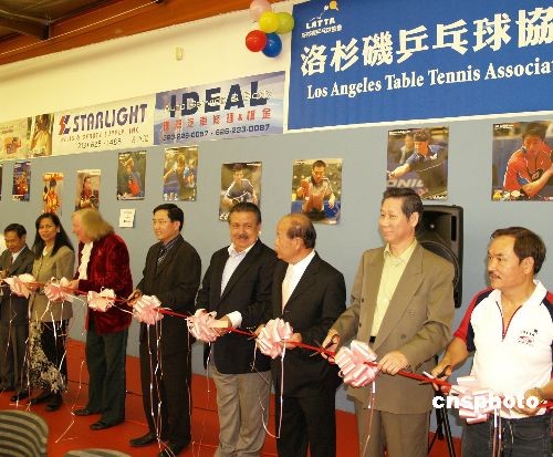 當(dāng)?shù)貢r(shí)間6月14日,已有11年歷史的美國洛杉磯乒乓球協(xié)會(huì)新場館落成,洛杉磯乒乓球協(xié)會(huì)會(huì)長劉旭按、前會(huì)長呂詩澄等參加新場館剪彩開幕典禮。該協(xié)會(huì)以培養(yǎng)華人乒乓球選手為宗旨,約有150名乒乓好手輪番參加訓(xùn)練,并訓(xùn)練出高軍、趙越、彭藹秋、黃堯晰4人代表美國乒乓球隊(duì)參加北京奧運(yùn)會(huì)。中新社發(fā) 盧威 攝