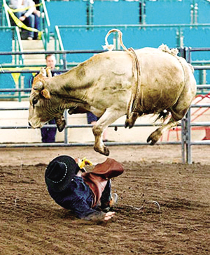 據(jù)英國《太陽報》、《每日鏡報》7月7日報道,日前美國加利福尼亞州一年一度的放牧人競技會在加州圣迭戈舉行。與往年一樣,騎公牛表演仍是競技會上最激動人心的表演。不過,今年的騎公牛表演卻發(fā)生意外一幕,一頭狂躁的公牛把一名年邁的騎手掀翻在地,飛蹄狂踩,所幸在工作人員幫助下這名騎手只是輕微受傷。