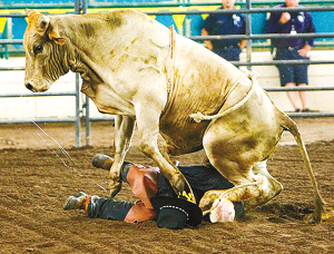 這位名叫布賴恩·尤班克斯的騎手已頭發(fā)花白,當(dāng)日表演中他騎一頭公牛剛出場,還沒來得及向觀眾揮手致意就被牛掀翻在地。這頭牛四蹄凌空飛起腳踹向布賴恩的頭部和軀干,一時驚慌失措的布賴恩趕緊用雙手保護(hù)住頭部,看臺上的觀眾更是陷入恐慌。一旁的工作人員和其他騎手見狀,趕忙跑過來驅(qū)趕公牛。令人不可思議的是,布賴恩竟然還掙扎著站了起來,被前來幫他的人帶離競技場。經(jīng)醫(yī)生檢查,布賴恩只是輕微擦傷和局部皮膚發(fā)腫,并無大礙。