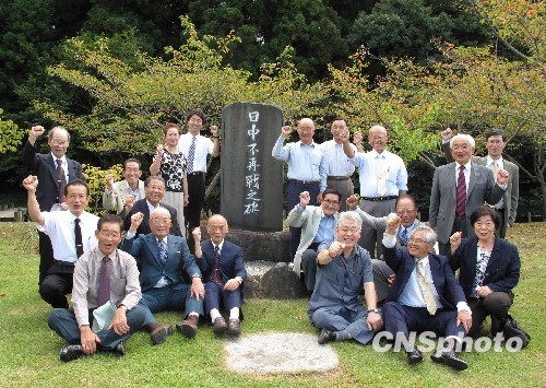 9月8日,由日本茨城縣“日中不再戰(zhàn)之碑”保存顯彰會(huì)主辦的慶祝新中國(guó)成立60周年紀(jì)念演講會(huì)在水戶市舉行。日中兩國(guó)友人50多人與會(huì),共同回顧日中友好交流的歷史,祝福中國(guó)更加繁榮富強(qiáng)。圖為演講會(huì)結(jié)束后,部分日中友人來(lái)到日中不再戰(zhàn)之碑前合影留念。中新社發(fā) 段躍中 攝