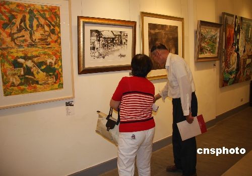 6月13日,中國(guó)文學(xué)藝術(shù)界聯(lián)合會(huì)與臺(tái)灣文藝協(xié)會(huì)聯(lián)合舉辦的《世紀(jì)初藝術(shù)——海峽兩岸繪畫(huà)聯(lián)展》,在臺(tái)北美術(shù)界地位最尊貴的“國(guó)父紀(jì)念館”中山畫(huà)廊北室開(kāi)幕,畫(huà)展精選60位兩岸頂尖藝術(shù)家的作品。中新社發(fā) 耿軍 攝