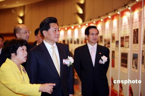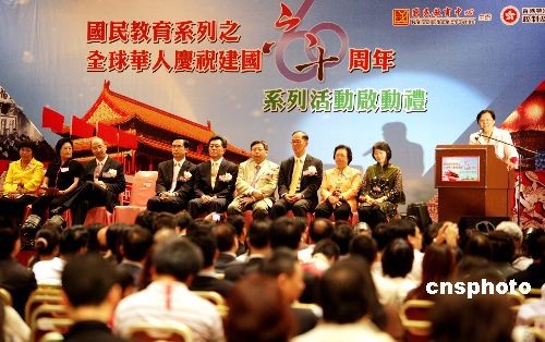 七月四日,中央政府駐港聯(lián)絡(luò)辦公室副主任李剛、外交部駐港特派員公署副特派員楊子剛等嘉賓在香港九龍灣國際展貿(mào)中心參觀“建國六十周年圖片展”。當(dāng)日,由香港國民教育中心舉辦的“全球華人慶祝建國六十周年”系列活動舉行啟動禮,活動旨在向市民加強(qiáng)國民教育,並透過媒體領(lǐng)域以增強(qiáng)學(xué)生的國家觀念和民族意識。中新社發(fā) 洪少葵 攝
