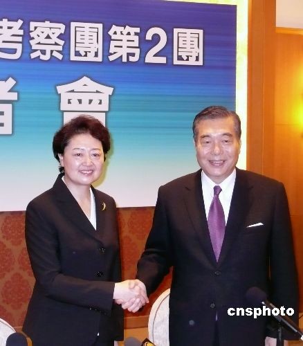 第二批“兩岸經(jīng)貿(mào)促進(jìn)考察團(tuán)”7月13日在臺(tái)北與268家臺(tái)灣廠商就零售消費(fèi)品采購(gòu)展開洽談。圖為率團(tuán)前來(lái)的商務(wù)部商貿(mào)服務(wù)司副司長(zhǎng)、海峽兩岸經(jīng)貿(mào)交流協(xié)會(huì)特約理事門曉偉(左)與臺(tái)北世貿(mào)中心董事長(zhǎng)王志剛共同接受記者訪問(wèn)。中新社發(fā) 劉舒凌 攝